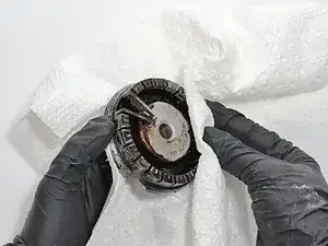 Положите оба компонента на бумажное полотенце, чтобы избежать загрязнения поверхности.