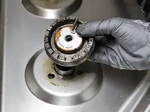 Снимите головку горелки с плиты.