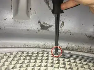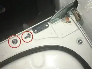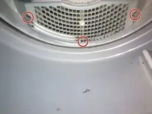 Используя отвертку Phillips #0, удалите три винта 25.4 мм, которые удерживают ловушку для ворса на сушильной машине.