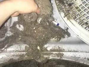 Удалите ловушку для ворса. Вы увидите, что внутри много ворса. После того, как вы снимете ловушку для ворса, нужно отодвинуть её в сторону. Так у вас будет доступ к ловушке и всему ворсу.