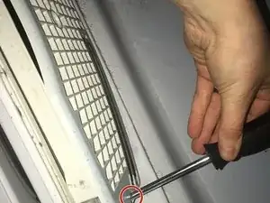 Используя отвертку Phillips #0, удалите два винта 12.7 мм с каждой стороны двери.