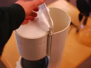 Убедитесь, что устройство полностью чистое и сухое. Закройте пластиковую корзину для фильтра и крышку для забора воды. Замените графин, и вы готовы к следующему приготовлению кофе!