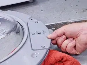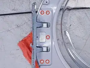 Используйте Torx‑отвёртку T25, чтобы заменить четыре винта длиной 15,4 мм, крепящие петлю двери к передней панели.