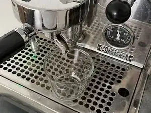 Установите рычаг управления в верхнее положение. Если предыдущие шаги выполнены согласно руководству, машина должна примерно через 5–6 секунд корректно начать процесс заваривания. В баристском жаргоне это называется CODA DI TOPO (итал. «мышиный хвост»). :-)