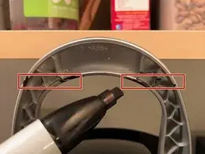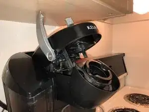 Выкрутите винты, удерживающие обе стороны ручки на шарнире резервуара K-Cup, используя отвертку Torx T20.