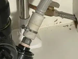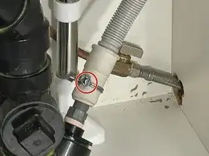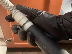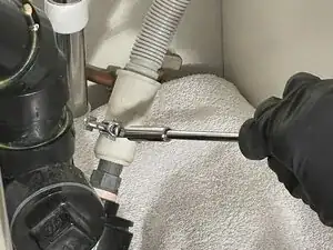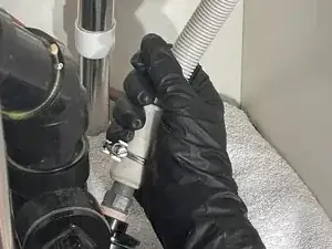 Подсоедините выпускной шланг обратно к трубке слива раковины и затяните хомут плоской отверткой 2,5 мм.