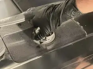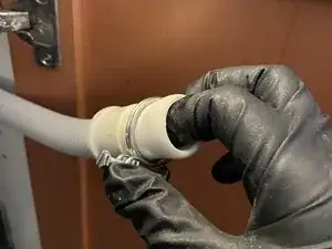 Включите пылесос, чтобы всосать частицы пищи или мусор, которые могут находиться глубже внутри выпускного шланга.