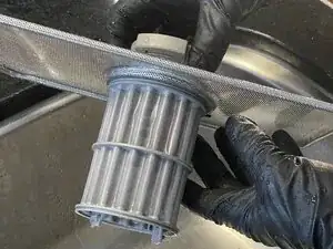 Поднимите дренажный экран и корзину фильтра вверх, чтобы снять их, и поместите в ближайшую мойку.