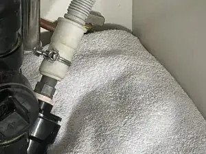 Постелите полотенце под выпускной шланг на случай пролива или вытекания воды.
