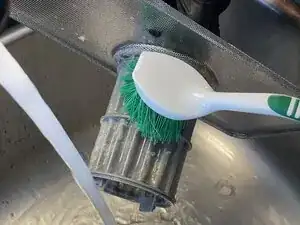 Промойте дренажный экран и корзину фильтра под проточной водой.
