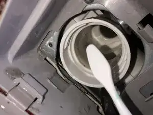 С помощью зубной щётки очистите паз в стиральной машине, куда вставляется водяной фильтр.
