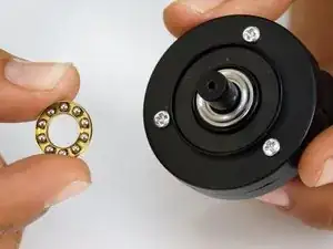 Установите одну серебристую шайбу-подшипник на колесо, плоской стороной вниз.