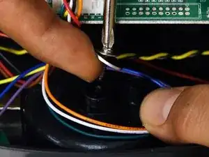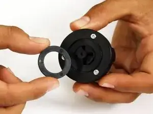 Заново установите последнюю шайбу и винт изнутри bObsweep, удерживая колесо на месте. Это обеспечит надёжную фиксацию.