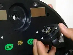 Между передним колесом и bObsweep находятся четыре шайбы. Обычно они находятся на верхней части колеса, но иногда могут застрять на корпусе. Проверьте нижнюю часть пылесоса, если какие-либо детали отсутствуют.