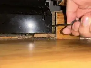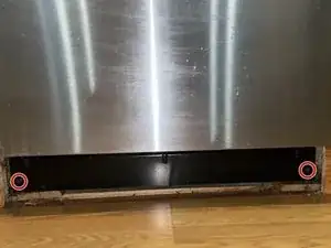 Используйте крестовую отвёртку №1, чтобы открутить два винта длиной 5 мм с концов нижней крышки посудомоечной машины.