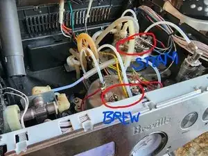 На котле для приготовления (спереди) есть два разъёма датчиков ближе к передней части машины с синими проводами. На паровом котле (тот, что сзади) три датчика. Сфотографируйте их.