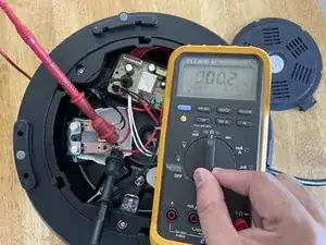 Установите прибор в режим измерения сопротивления/прозвонки и проверьте целостность цепи в состоянии покоя и при нажатии на датчик.