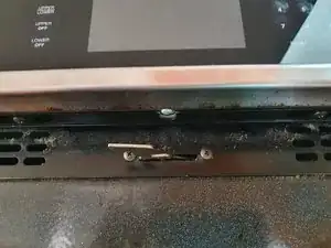 Вам нужно снять панель управления и дисплея. Для этого откройте дверцу верхней духовки. Снизу панели управления/дисплея найдите 4 чёрных самореза по металлу и один серебряный (в центре).