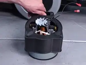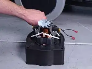 Используйте крестообразную отвертку, чтобы удалить два винта, фиксирующие крышку лопасти вентилятора мотора.