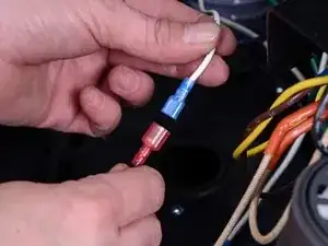 Отсоедините фиолетовый провод от левого чёрного провода.