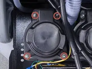 Используйте крестообразную отвертку, чтобы удалить четыре винта и шайбы, закрепляющие крепление вакуумного мотора.
