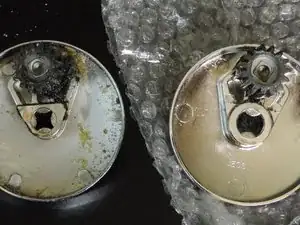 Очень трудно открутить скрытый Tx20-винт под пластиковым приводным колесом. Берегитесь металлических заусенцев, за которые может зацепиться палец.