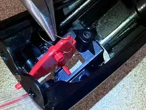 Теперь у вас есть доступ к самому спусковому рычагу, что позволяет снять старую сломанную пружину.