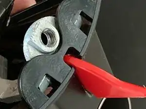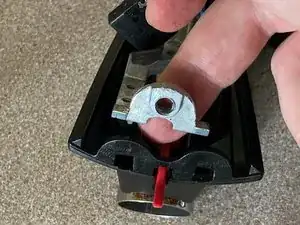 Отвёрткой PH0 открутите 2 винта, фиксирующие выключатель спуска к кронштейну.