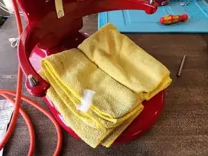Теперь, когда силовая передача/двигатель полностью отключены от миксера, снимите их и отложите в сторону.