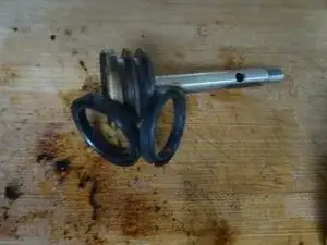 Шток поршня внутри цилиндра уплотнён силиконовой манжетой. Для её замены сначала нужно ослабить стопорное кольцо. Это немного сложно, поэтому специальные щипцы для стопорных колец сильно облегчают работу.