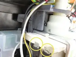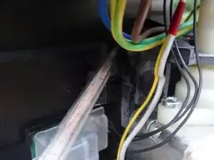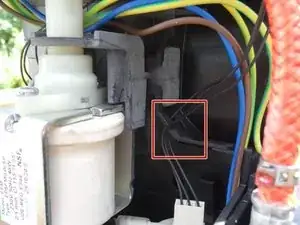 Термопредохранитель на кабеле на заводе приклеен к насосу. Аккуратно подденьте клей и потяните термопредохранитель вниз.