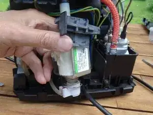 Выньте насос. Он всё ещё соединён двумя шлангами.