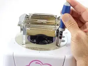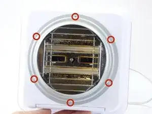 Удалите шесть винтов Phillips #02 длиной 10 мм, которые крепят металлический кожух, закрывающий нагревательный элемент.