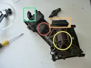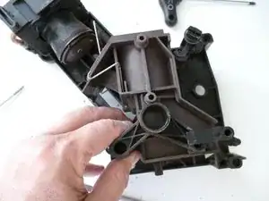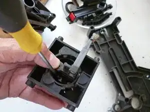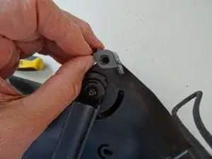 Выверните один чёрный винт Torx T10, крепящий ручку открытия.