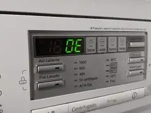 Цикл стирки прерывается, на панели управления появляется код ошибки OE, барабан заполнен водой.