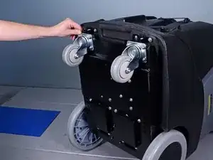 Опустите основание до тех пор, пока поворотные колеса не коснутся земли.