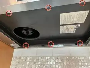 Если панель не выходит легко — это нормально. УБЕДИТЕСЬ, ЧТО ПИТАНИЕ ОТКЛЮЧЕНО, просуньте пальцы в зазор между вентилятором и серой панелью и тяните вниз с умеренной силой. Если все винты удалены, поводов для беспокойства нет.