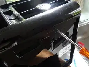 Нажмите на эти зажимы плоской отверткой и потяните крышку вверх, пока они не ослабнут