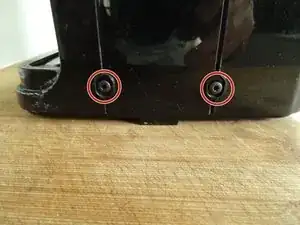 На основаниеной пластине есть два углубления с защёлками внутри каждого. Нажмите на защёлки отверткой и отстегните боковую панель по нижнему краю.