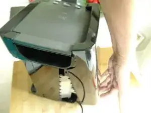 Боковую панель сначала нужно отстегнуть по нижнему краю. Поверните машину так, чтобы дно было обращено к Вам.