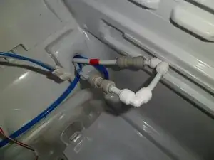 Снимите шланги. Может вытечь немного воды. Пометьте трубки красной и синей лентой. Это упростит повторную сборку при проверке по гарантии.