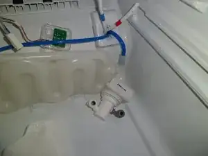 Теперь вытащите шасси нижней части дна, используйте пластиковый инструмент для клипс. Снимите держатель водяного фильтра.