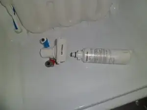 Водяной фильтр необходимо заменять каждые 6 месяцев. Оригинальный фильтр дорогой. Поэтому я решил укоротить фильтр и установить недорогой фильтр снаружи.