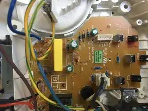Внизу бака расположена печатная плата (PCB). Управление устройством осуществляет микроконтроллер (Ref. 15) (PIC16F1820). Он управляет входами-выходами устройства, подключёнными к различным элементам: датчику, сенсору, насосу и панели управления, для обеспечения надлежащего нагрева подошвы утюга и генерации пара.