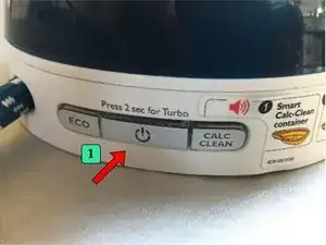 Панель управления имеет три кнопки. Средняя кнопка = Вкл/Выкл, Левая кнопка = Эко-режим, Правая кнопка = Функция против накипи