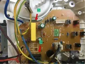 Ещё одной распространённой причиной отказа может быть конденсатор (Ref. 17). Эта деталь часто встречается в мелкой бытовой технике. Это полистерный конденсатор класса X2. Ёмкость близка к 1 мкФ, а рабочее напряжение > 220 В. При сомнениях проверьте его мультиметром в режиме измерения ёмкости.