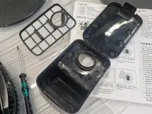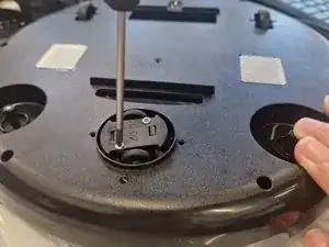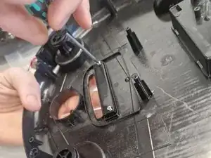 Используя Phillips #1, отверните два винта, удерживающих защёлкивающуюся крышку, под которой находятся колёса, закреплённые на оси. Понадобятся пинцет или плоская отвёртка, чтобы аккуратно освободить защёлки.