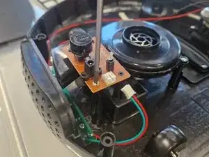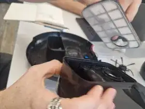 Используя Phillips #1, отверните 6 винтов с основания пылесоса и аккуратно снимите верхнюю крышку.