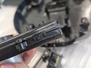 Есть несколько пластиковых защёлок, которые нужно аккуратно отжать — используйте плоскую отвёртку или шим для этого. Проявляйте дополнительную осторожность, так как некоторые защёлки могут быть хрупкими и сломаться при чрезмерном усилии.