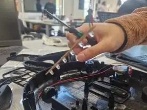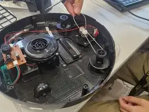 Аккуратно, используя пальцы, плоскую отвёртку или рекомендованные пинцеты, отсоедините три разъёма JST от печатной платы, которые соединяют рабочее колесо, узел привода и блок УФ-подсветки.
